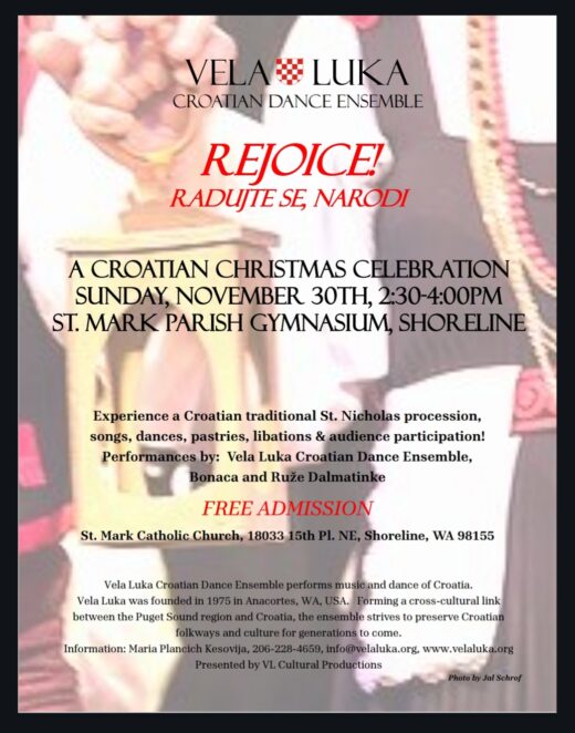 Sunday, November 30, 2:30-4:00pm St. Mark Catholic Church gymnasium, Shoreline, 18033 15th Pl. NE, Shoreline, WA 98155 Rejoice! Radujte se, Narodi! A Croatian Christmas...